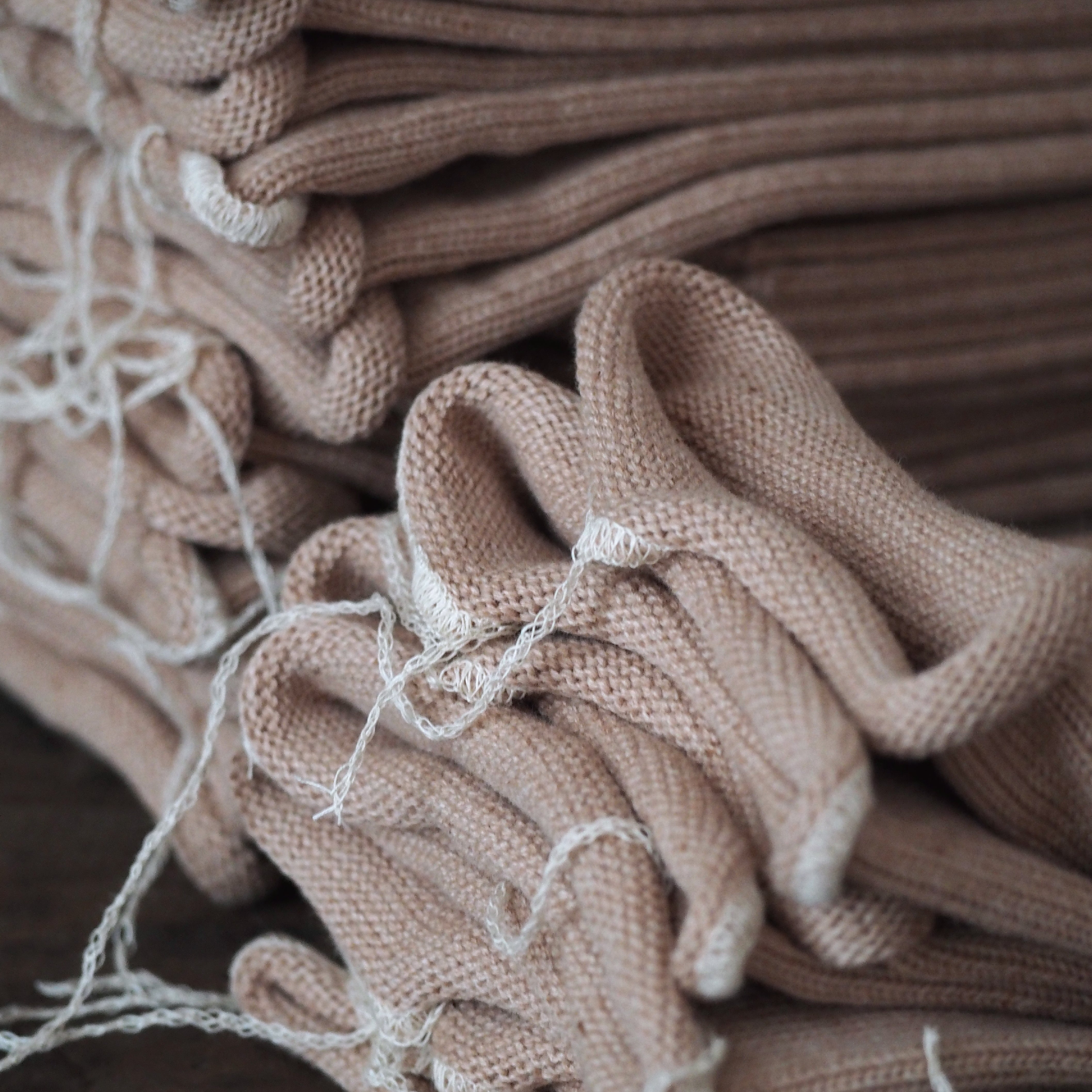 Yarn: FOXFIBRE®️ 100% Organic unbleached & undyed cotton. Bred by Sally Fox in California. Grown on Alvarez farms in New Mexico, USA. Spun by Taishoboseki in Japan. Made by Suoku in Japan.