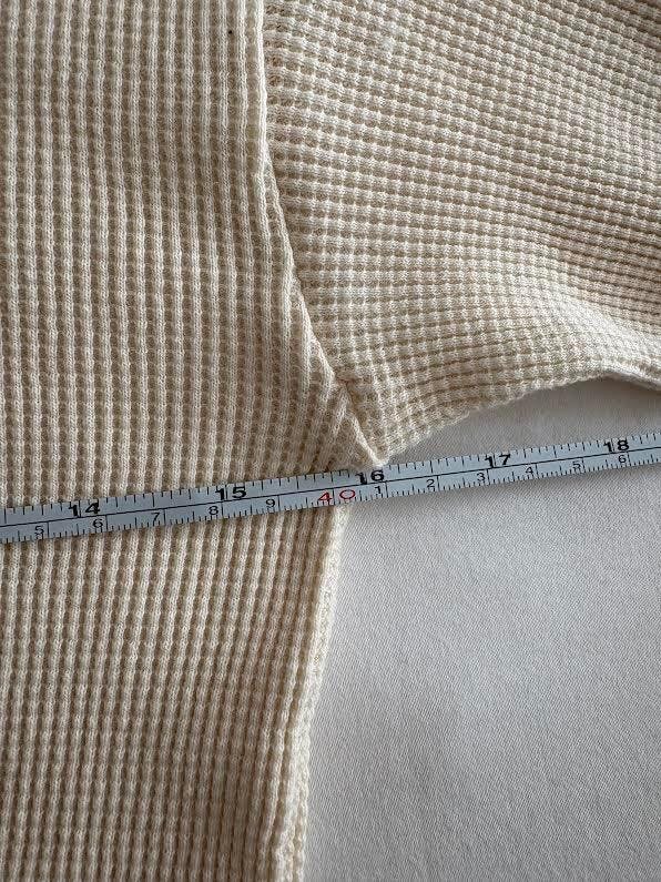 7oz Certified Organic and 100% made in the USA waffle knit natural unbleached cotton thermal shirt.